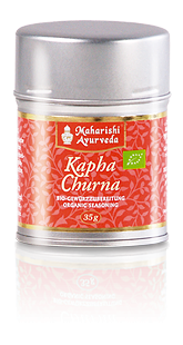 Gleichen Sie ein etwas schwer verdauliches Essen gekonnt aus, indem Sie mit etwas Kapha Churna eine angenehme Schärfe in Ihr Gericht zaubern. Mit Ingwer, Koriander, schwarzem Pfeffer, Vollrohrzucker, Gelbwurz, Salz und Ceylon-Zimt. Für scharf-würzige und leicht feurige, aber auch schwere Speisen und wann immer Sie Lust auf etwas schärfer gewürzte Speisen haben.